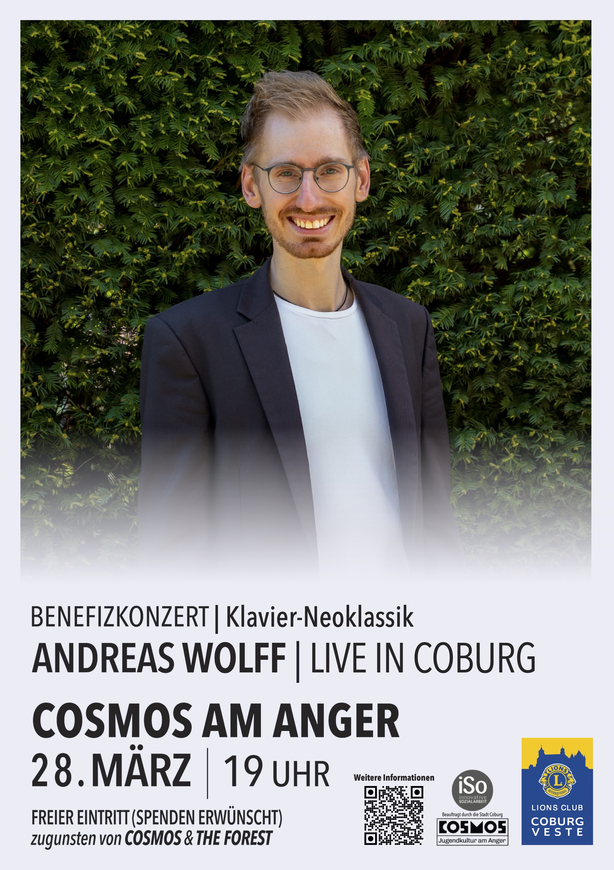 Das Konzert verbindet Musik mit einem guten Zweck: Der Eintritt ist frei, um Spenden für das Jugendkulturzentrum COSMOS am Anger und das Aufforstungsprojekt THE FOREST von Martin Kohlstedt wird gebeten. Ein Abend voller neoklassischer Klavierstücke, erzählerischer Tiefe und persönlicher Geschichten erwartet das Publikum in einem kreativen, inspirierenden Umfeld.